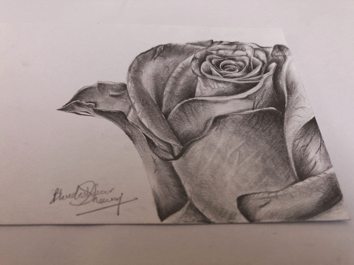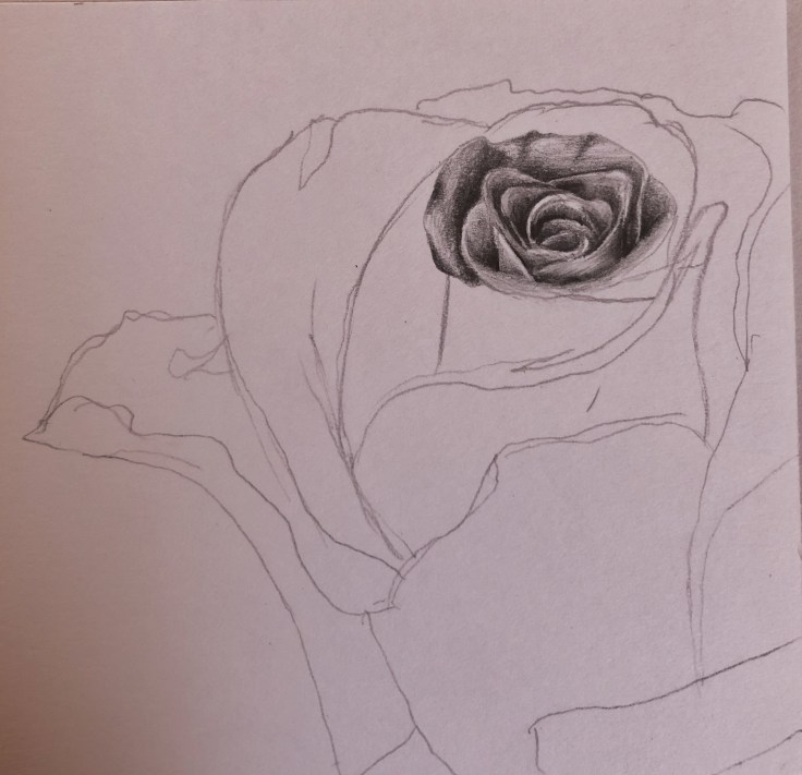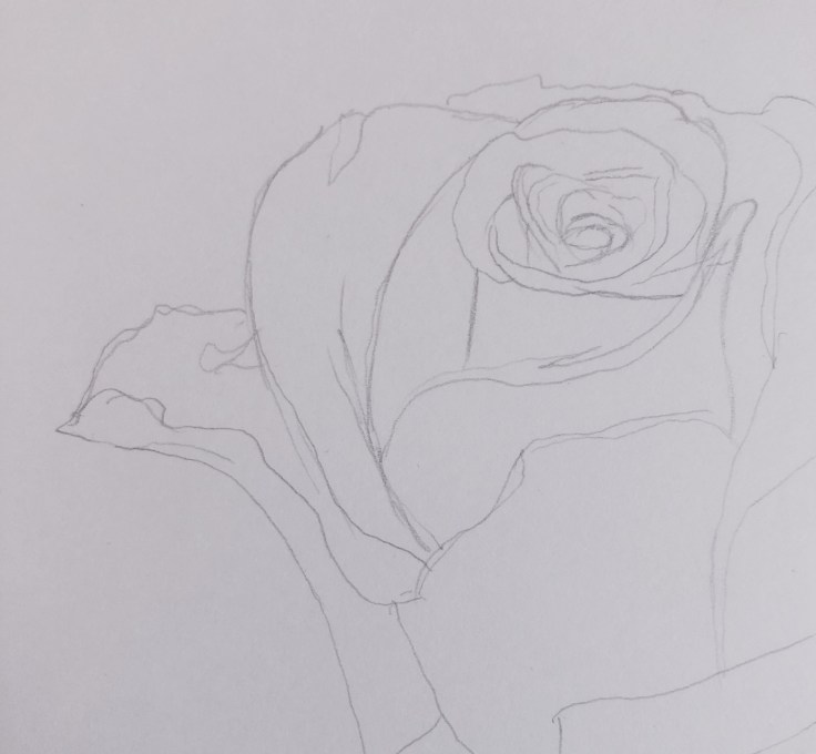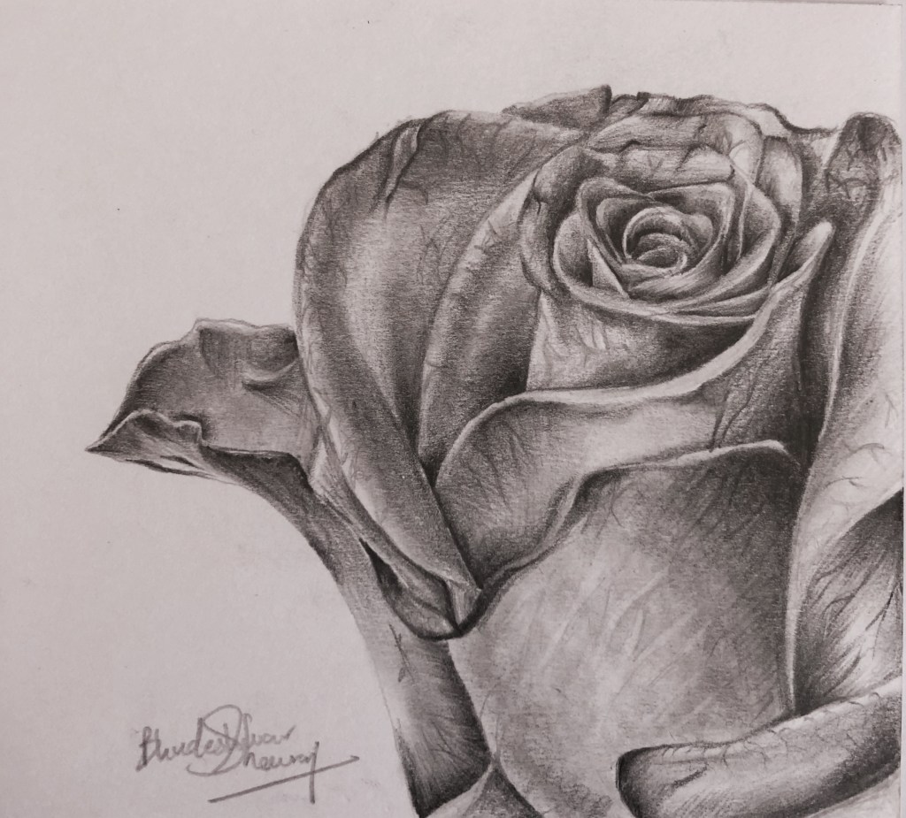 This rose was drawn with pencil shading technique. I used the set of Staedtler-Mars Lumografh to draw and add light and shade effects to the diagram. I started to outline the flower with a 4B pencil, eventually did the effects with 6B, 5B, 4B, 3B, and 4H.